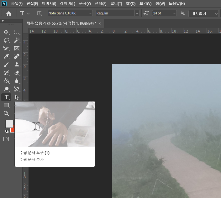 그리고 ctrl+T 를 눌러서 네모 박스 사이즈를 글자에 맞게 변형시켜줘요!